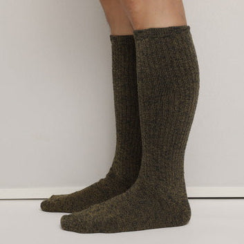 It is knitted thickly to prevent chafing on the calves when wearing engineer boots.